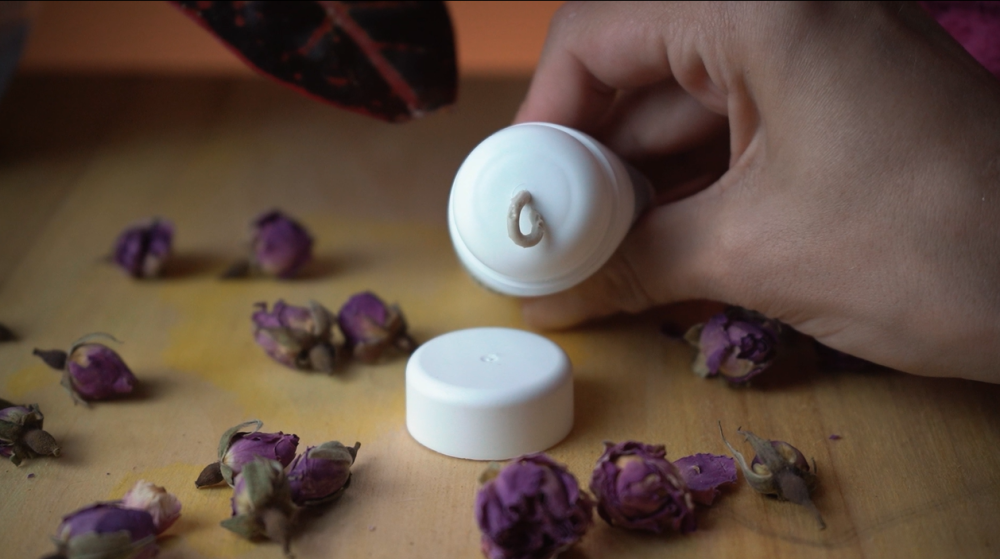- Otočte uzáver, vytlačte malé množstvo dezodorantu (veľkosť hrášku).