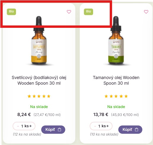 Aby sme vám uľahčili orientáciu v našom sortimente a pomohli spraviť správne rozhodnutie, jasne označujeme produkty, ktoré sú v bio kvalite a tie, ktoré nie sú. Tieto informácie sú dostupné nielen prostredníctvom vizuálnych štítkov priamo na produktoch (viď. foto), ale aj v detailných popisoch na našej webovej stránke.